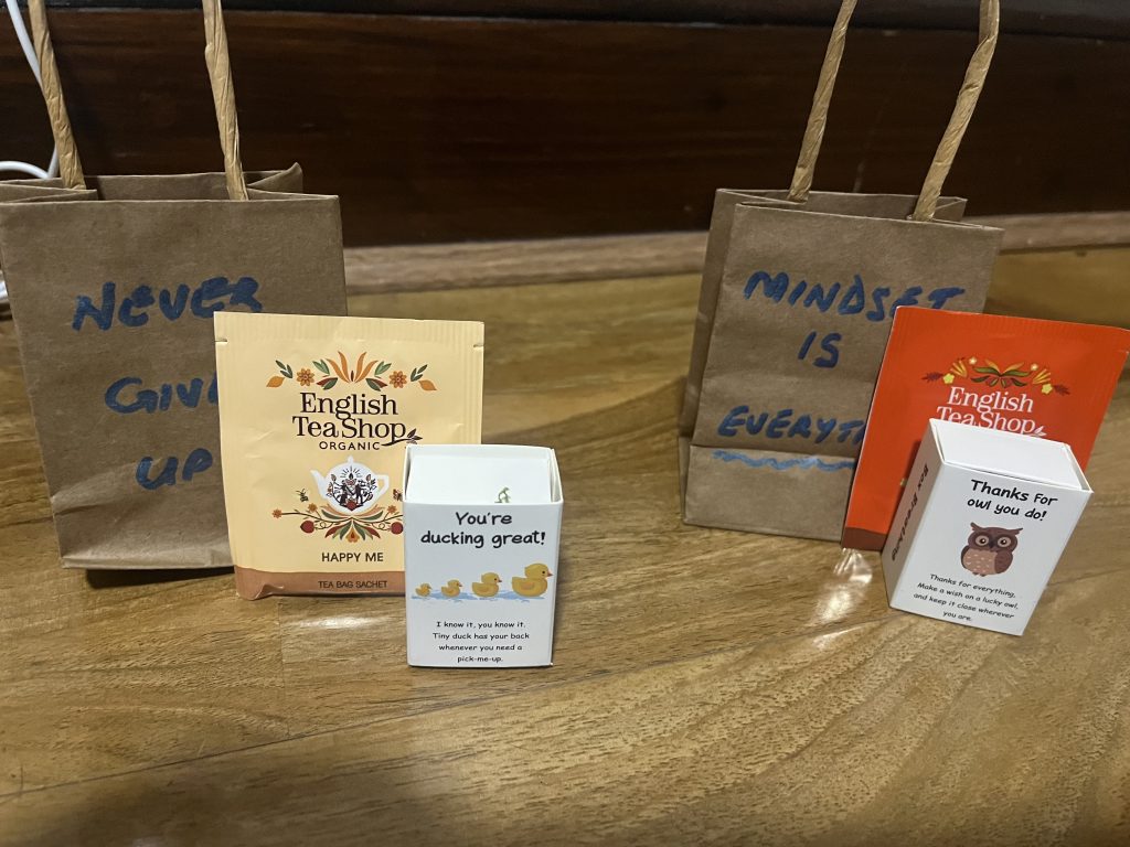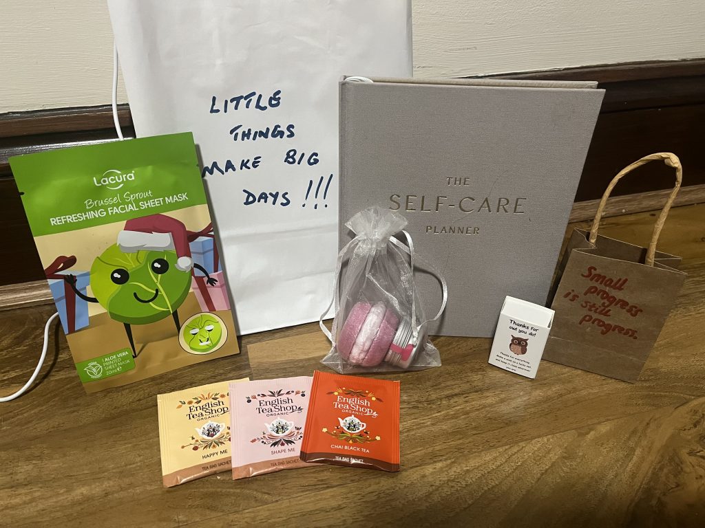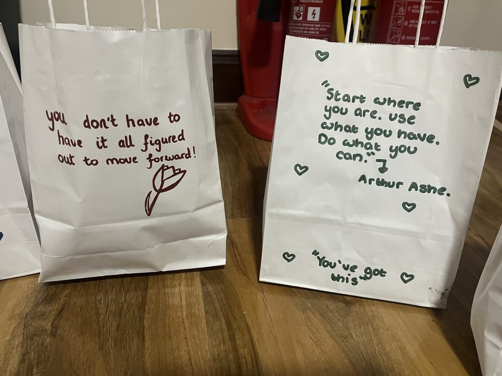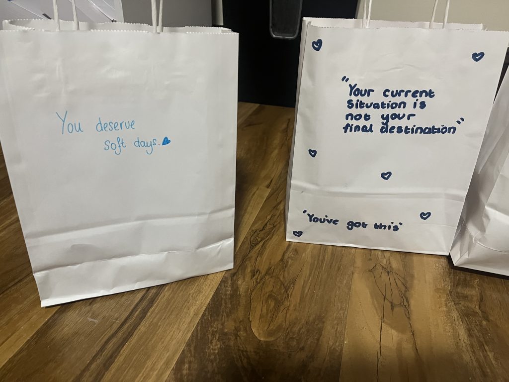 Each bag included a self-care message written by our young people and staff – a small gesture with a big impact.